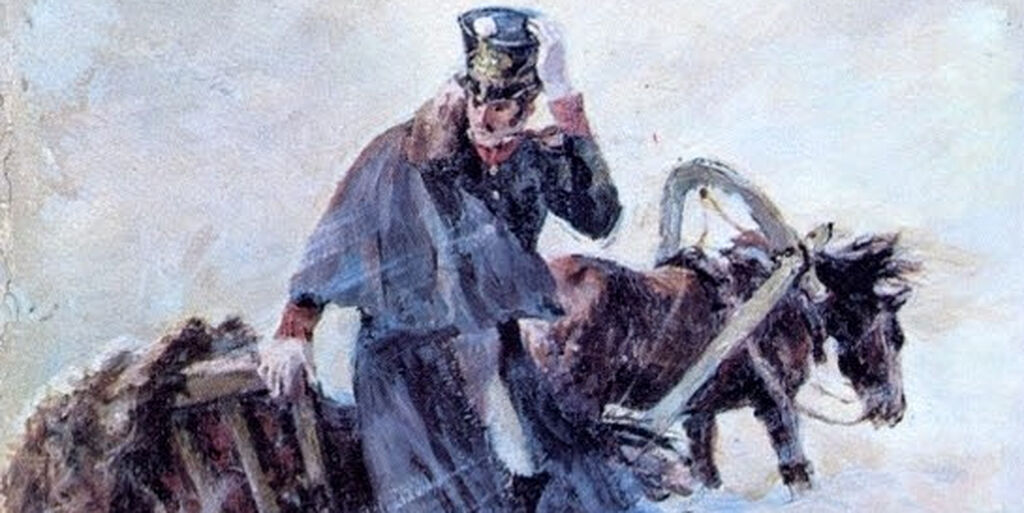 Ворота заскрыпели; парень вышел с дубиною и пошел вперед, то указывая, то отыскивая дорогу, занесенную снеговыми сугробами. «Который час?» — спросил его Владимир. — «Да уж скоро рассвенет», — отвечал молодой мужик. Владимир не говорил уже ни слова.
