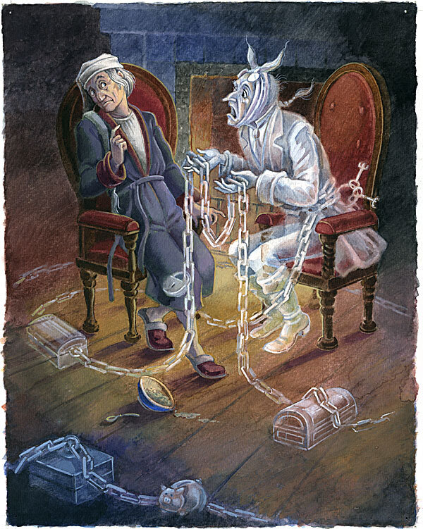 — Мистер Марли уже семь лет как покоится на кладбище, — отвечал Скрудж. — Он умер в сочельник, ровно семь лет назад.