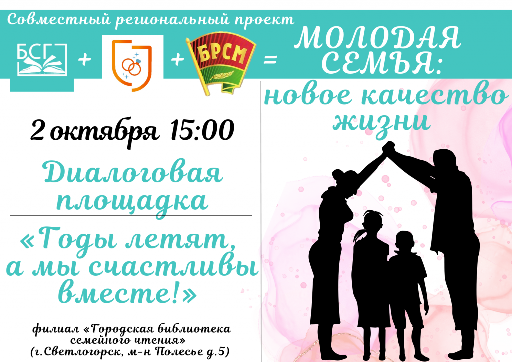 2 октября в городской библиотеке семейного чтения состоится тёплая и душевная встреча под названием «Годы летят, а мы счастливы вместе!». Мероприятие пройдёт в формате диалоговой площадки, где каждый сможет задать вопросы и поделиться своим мнением о том, что такое настоящая семья.