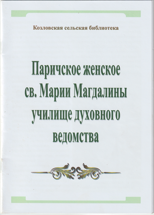 Паричское женское св. Марии Магдалины училище духовного ведомства / автор-составитель В.И. Петрова, библиотекарь Козловской сельской библиотеки ГУК «Светлогорская районная сеть библиотек». — Светлогорск, 2019. — 14с.