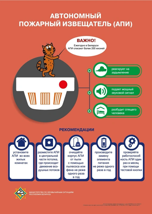 Обнаружить пожар на ранней стадии вам может помочь автономный пожарный извещатель, который устанавливается в каждой жилой комнате.
