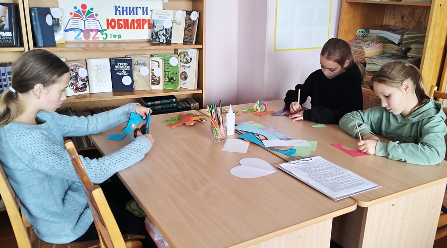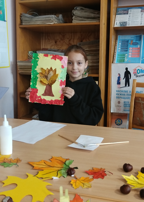 В последний день октября Михайловская сельская библиотека превратилась в настоящую творческую мастерскую! Библиотекарь с радостью пригласила ребят на час умелых рук «Осенняя мастерилка», посвященный красоте и щедрости осени. Дети с горящими глазами погрузились в мир вырезания и аппликации, с удовольствием создавая свои уникальные осенние композиции. Чтобы размяться и поднять настроение, девчонки дружно исполнили веселую физкультминутку «Листочки» под зажигательную музыку.