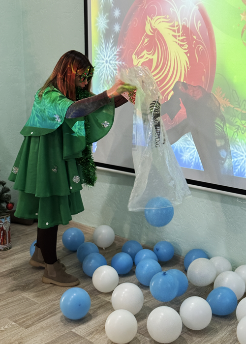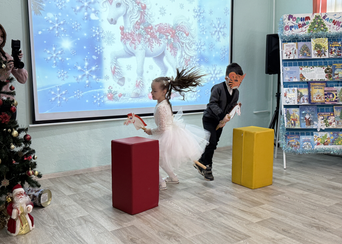 За окном тихо кружился пушистый снег, словно предвещая волшебство. А в стенах городской библиотеки №4 разворачивались настоящие новогодние чудеса. Очаровательная Лошадка, символ 2026 года, в компании харизматичной и доброй Ведьмы, чьи волшебные напитки источали аромат праздника, создавала атмосферу таинственности. Ведущая, искусно сплетающая загадки, песни и танцы, не давала заскучать ни на минуту. А затем появились Дед Мороз и нарядная Ёлочка, приглашая всех в вихрь весёлых игр, конкурсов и зажигательных хороводов. И, конечно же, не обошлось без долгожданных подарков! Получился поистине сказочный новогодний микс, полный радости и смеха.