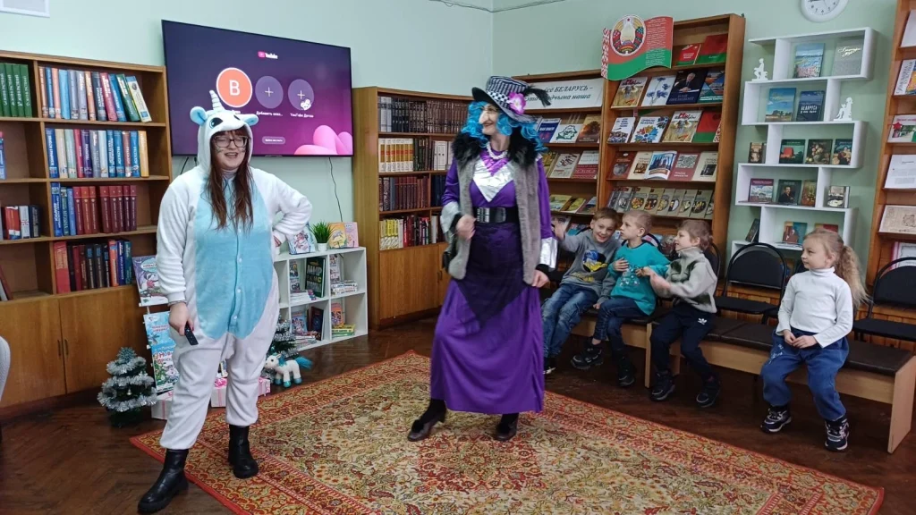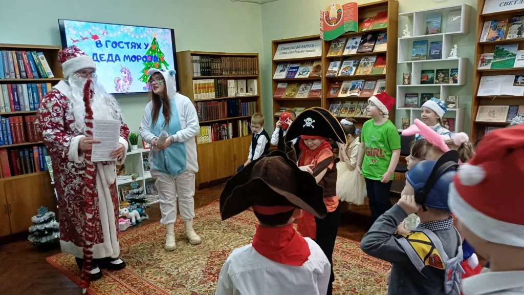 Зима – время чудес, а зимние каникулы – это прекрасная возможность для детей и подростков окунуться в мир увлекательных приключений! Сотрудники филиала «Городская библиотека №3»» подготовили для читателей настоящую зимнюю сказку, полную веселья, новых знаний и незабываемых впечатлений. Ребята увидели театрализованное представление «А у нас Новый год! Елка в гости нас зовет!», приняли участие в фольклорных посиделках «Льются звуки жизни, счастья и добра, озаряя мысли светом Рождества», прослушали литературный дозор по новогодней серии сказок Татьяны Коваль «Самый маленький снеговик». Присутствующие не только веселились, но и показывали свои знания, отвечая на вопросы юмо-викторин, разгадывали онлайн-загадки и ребусы от Дедушки Мороза и Снеговика, которые прислали поздравления для них. На праздники прибыли герои зимних книг — Дедушка Мороз, Ягуша, Елка, единорог Нова, Колядовщики, которые поспешили представить себя и окунуть ребят в море пожеланий, радостных минут и удивительного зимнего волшебства!